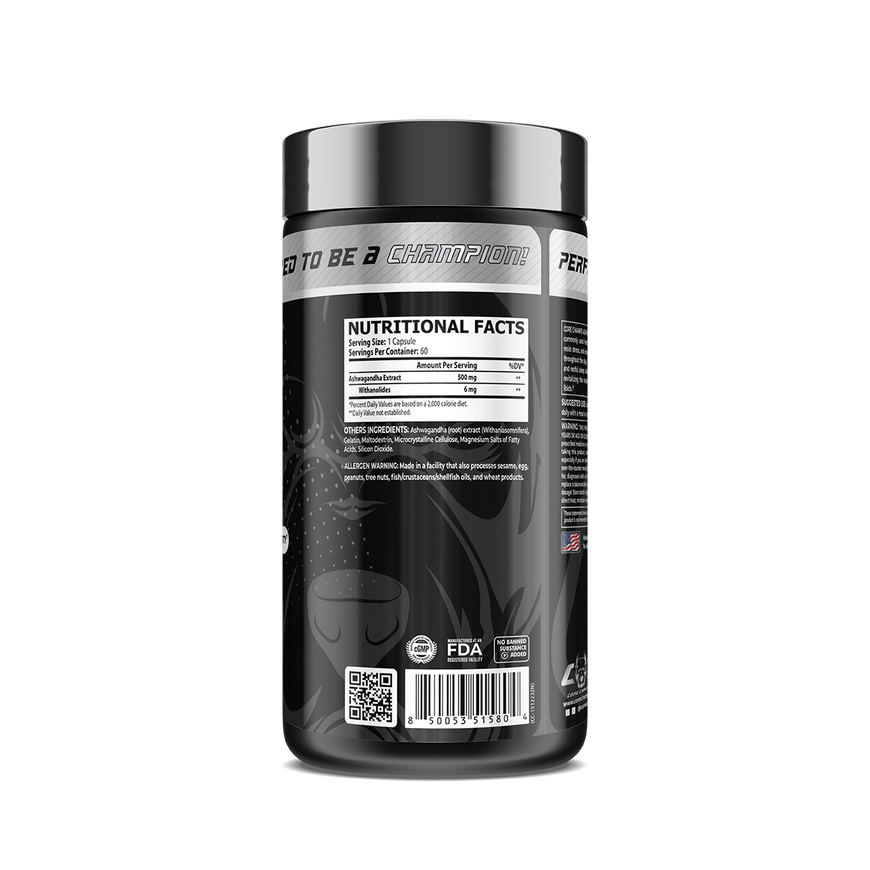 CORE CHAMPS ASHWAGANDHA is one of the most highly regarded and commonly used herbal adaptogens. It maximizes the body's ability to resist stress and enables the body to reserve and sustain vital energy throughout the day. It also calms the nervous system and promotes sound and restful sleep. Ashwagandha is also considered one of the best herbs for revitalizing the male reproductive system and supporting a healthy libido.